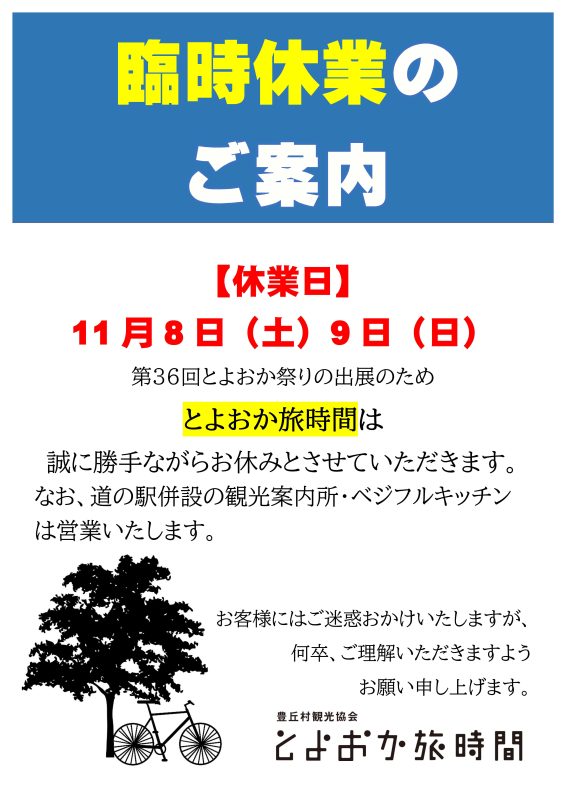 とよおか旅時間臨時休業のお知らせ